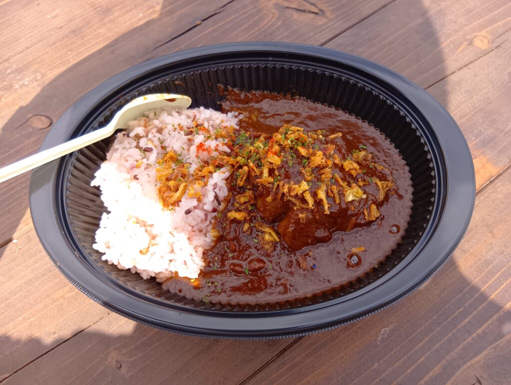 kinbaneさんのチャーシューから揚げとMARS LABさんの和牛すね肉のビーフカレーを頂きました。
